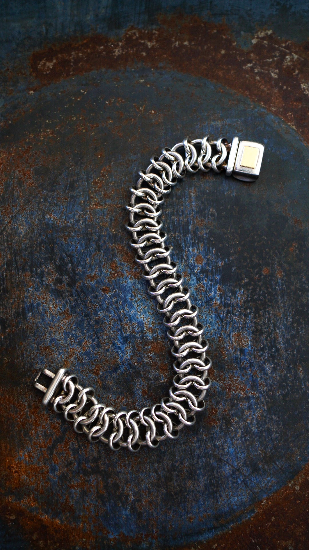 大きさの異なる大小のループモチーフを繋ぎ合わせた手の込んだ作りが特徴的なブレスレットで、イエローゴールドが使用された留め具もご着用頂いた際には良いアクセントとなります。