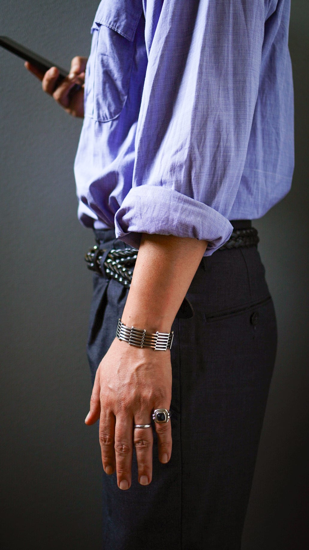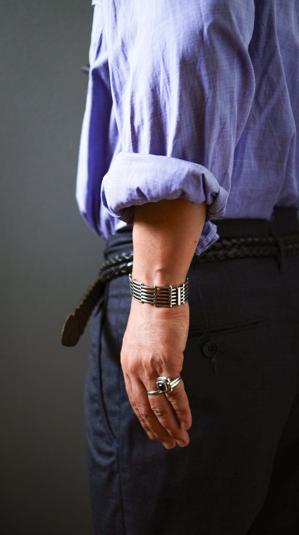 スタイリッシュなデザインで程良いボリューム感のあるゲートリンクは、ブレスレット単体でサラッと付けても腕元を十分に引き立ててくれます。