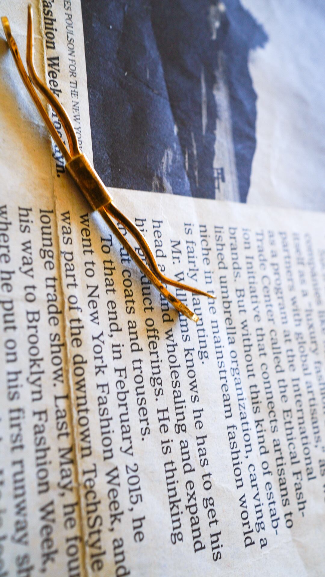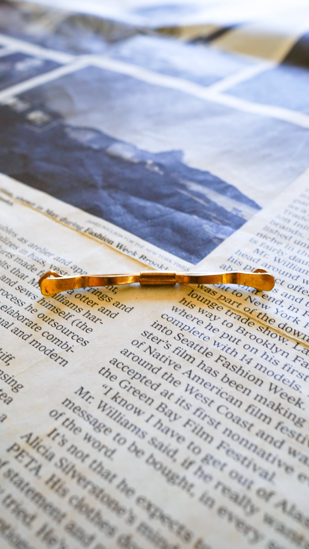 そこで、ネクタイ自体を持ち上げて支えることで、結び目が緩まないようにすると同時に、アーチを作ることでVゾーンに立体的な表情を作る用途としてカラーピンが登場した経緯があり、ヴィンテージネクタイとの相性は抜群です。