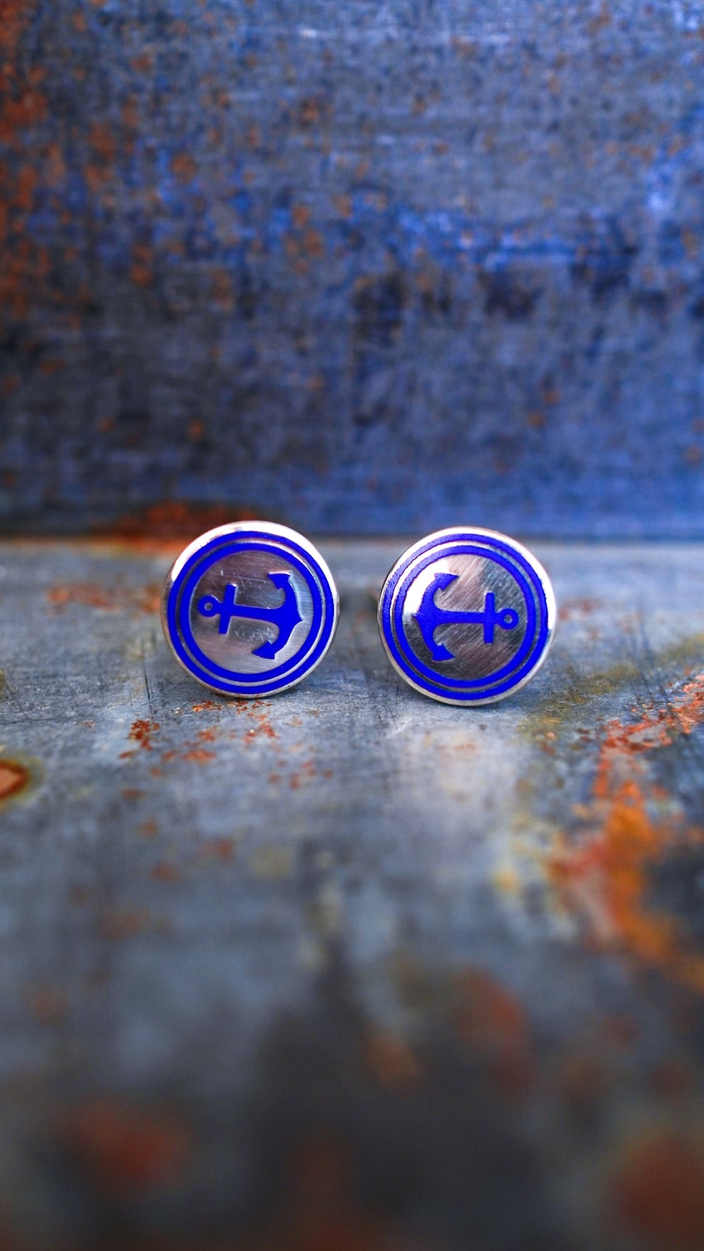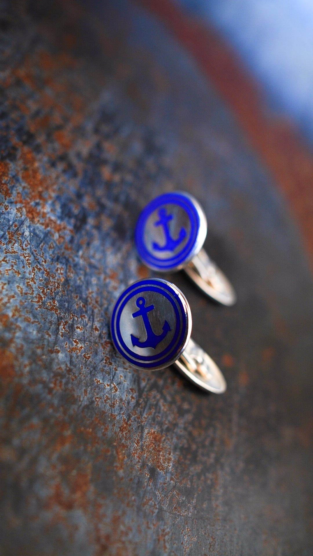 綺麗なブルーのアンカーマークが印象的で、袖口に映えるカフリンクスです。
