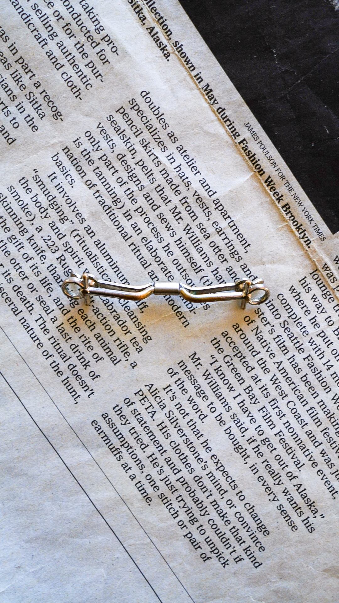 両端のアンク(古代エジプトで用いられていた十字架)のようなデザインが印象的なシルバートーンのヴィンテージカラーピン。