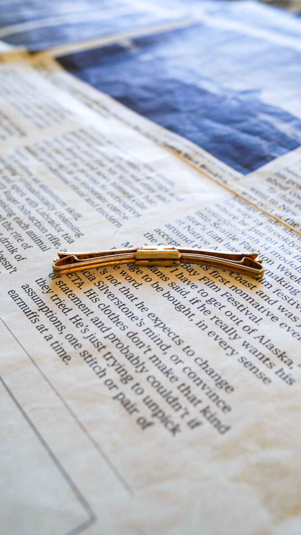 両端のダイアゴナルラインが印象的なゴールドトーンのヴィンテージカラーピン。